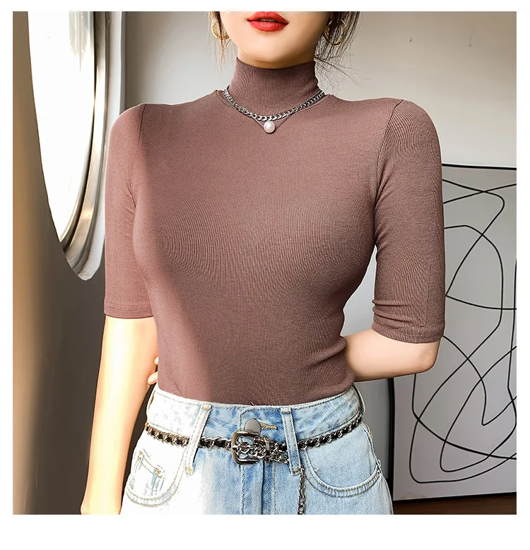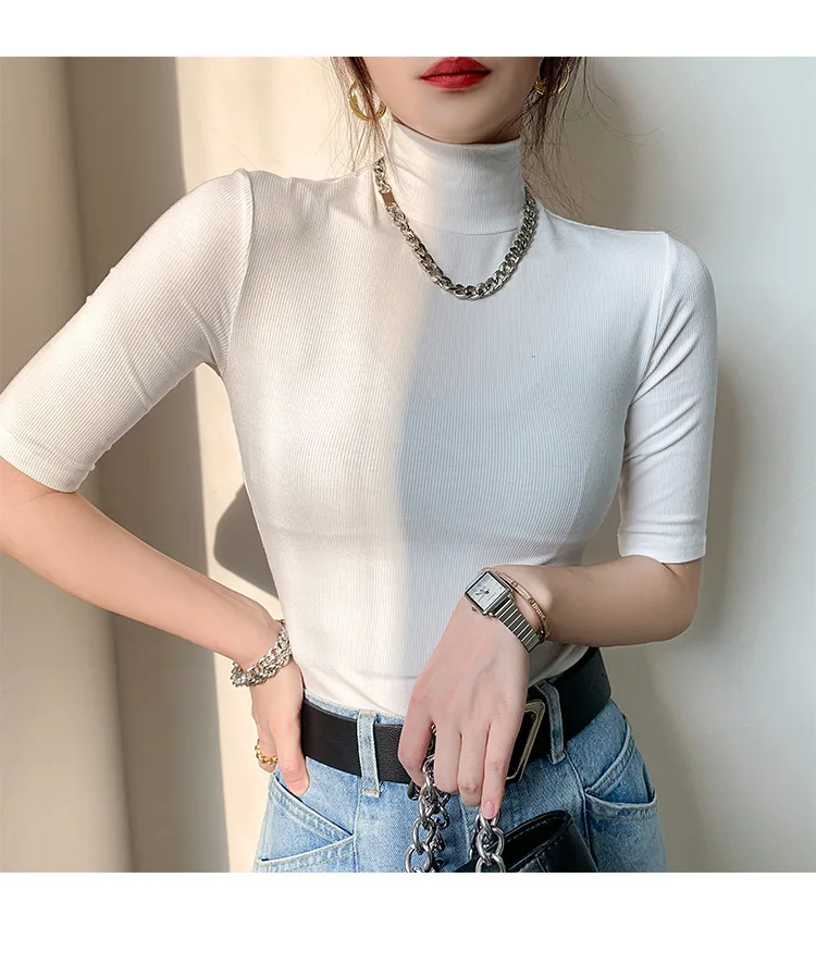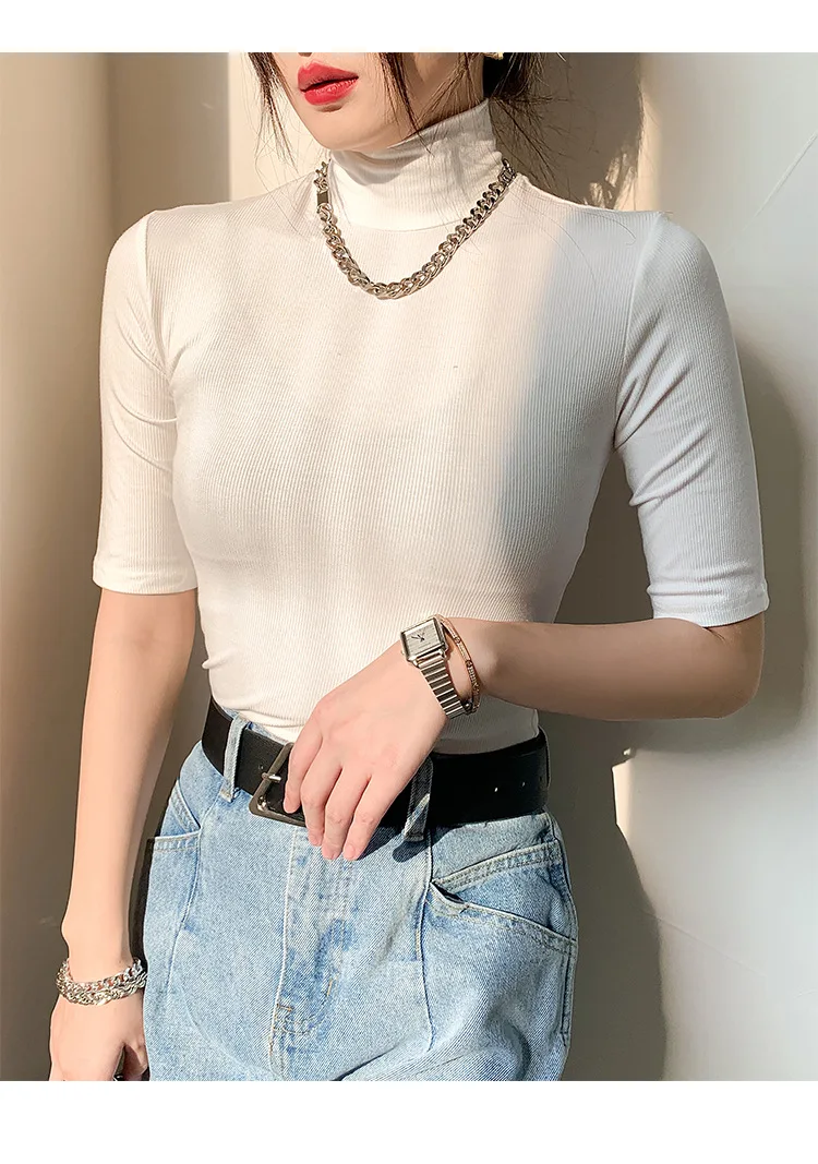 Camiseta básica de algodón para mujer, camiseta ajustada de cuello | Ropa de mujer · Omeda.es