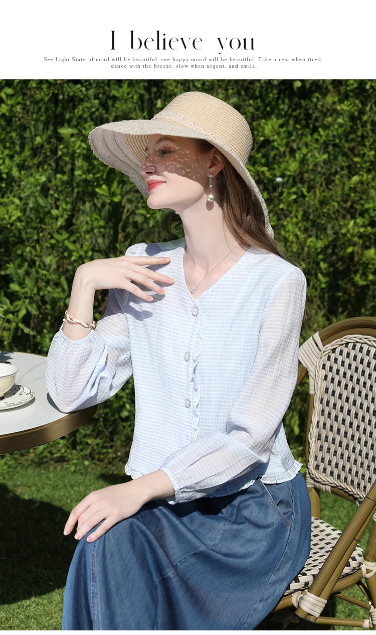 I BELIEVE YOU Blusa de mujer Camisa elegante Color azul Blusa. Descubre ropa de mujer seleccionada por Omeda para tu día a día.