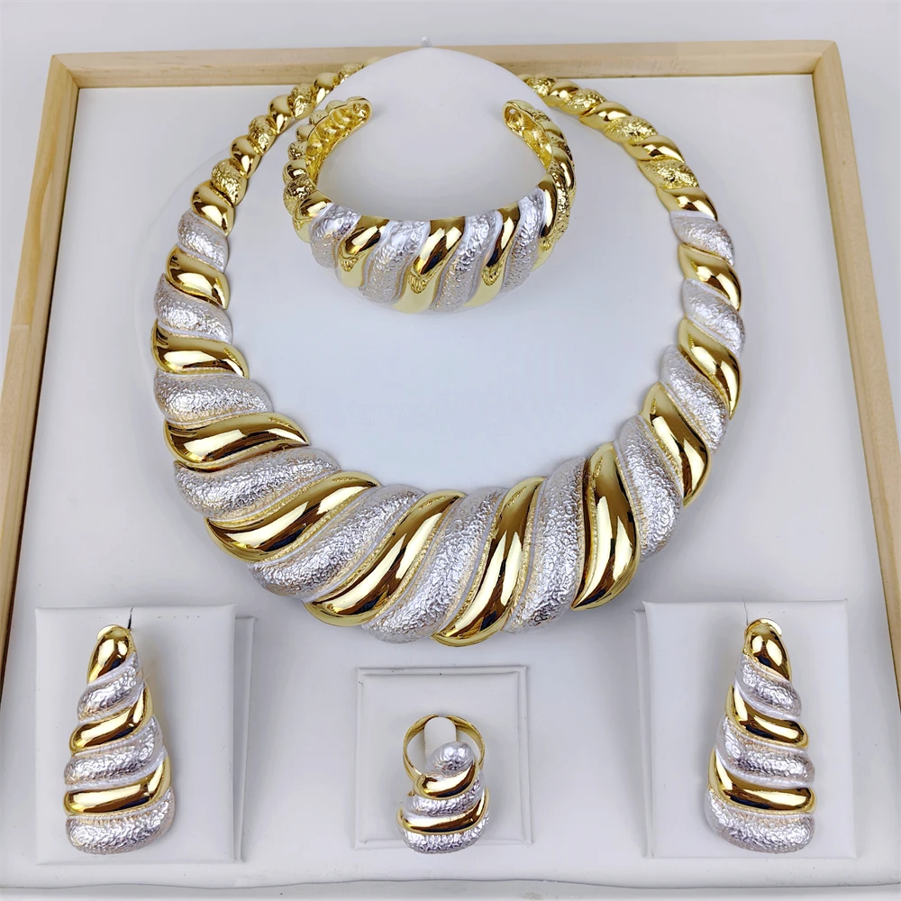 Juegos de joyas para mujer chapados en oro de Dubái, collar grande. Completa tus looks con accesorios de moda de la selección Omeda.