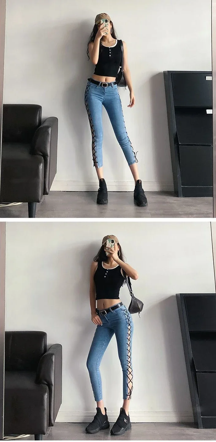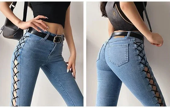 Pantalones vaqueros azules ajustados con bolsillos para mujer,. Descubre ropa de mujer seleccionada por Omeda para tu día a día.