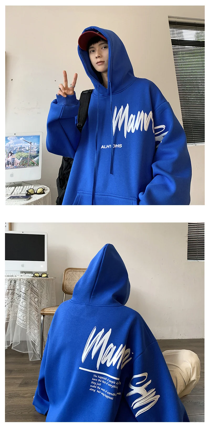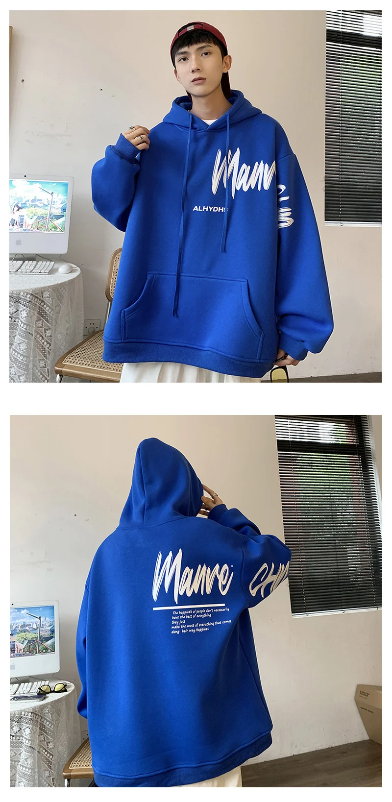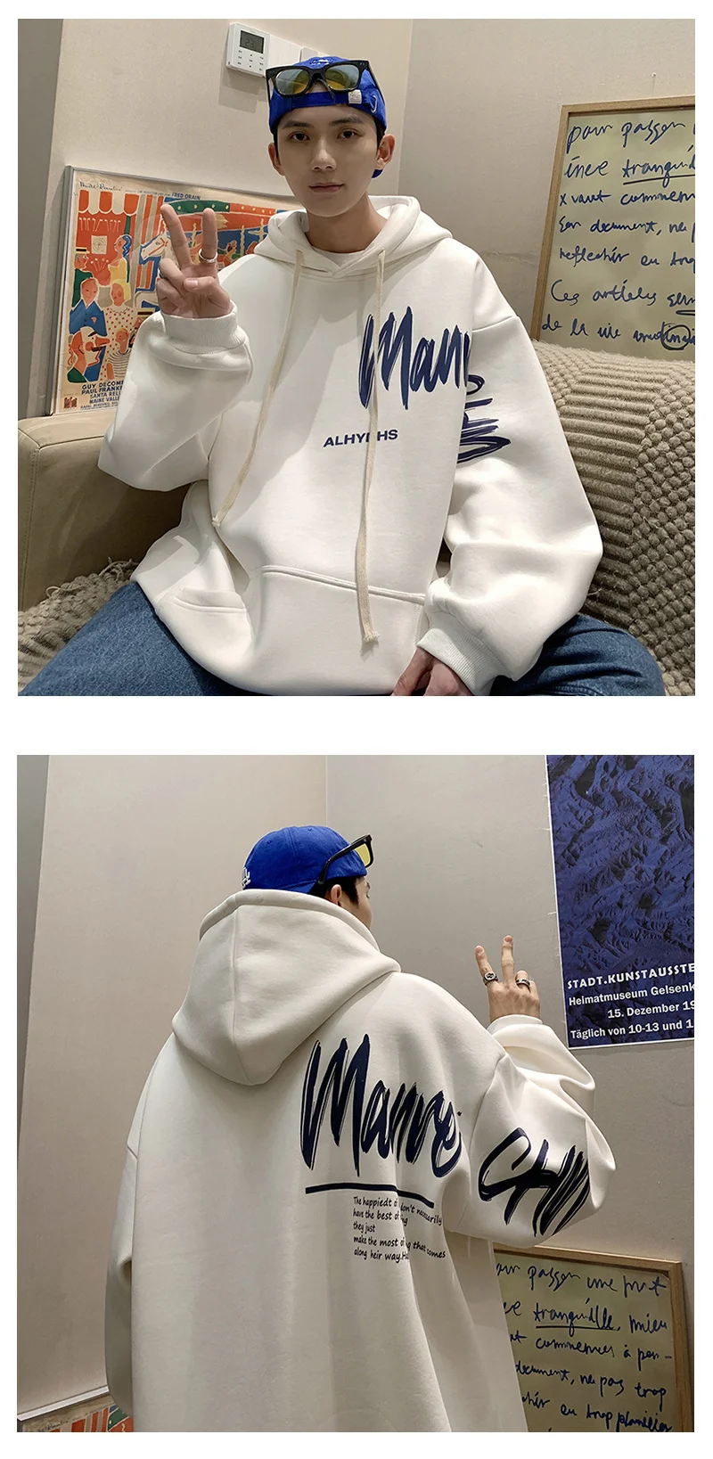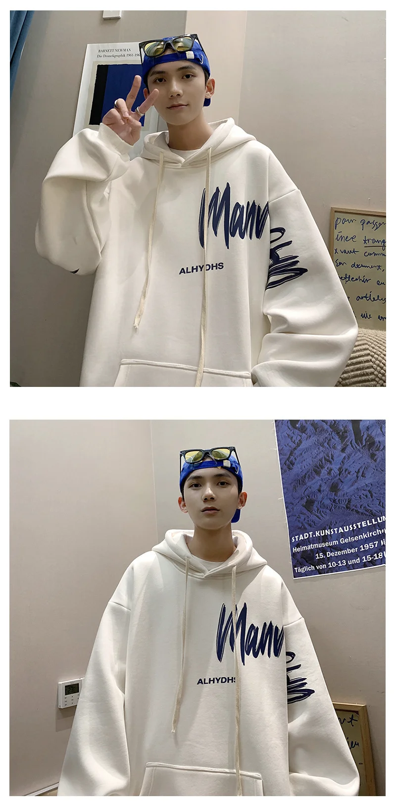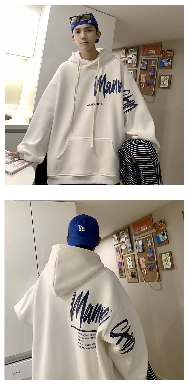 Sudadera con capucha de gran tamaño para hombre, color blanco con. Renueva tu armario con ropa de hombre cómoda y versátil en Omeda.