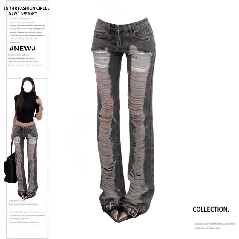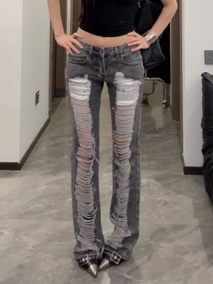 Vaqueros ajustados rasgados grises para mujer, pantalones vaqueros. Descubre ropa de mujer seleccionada por Omeda para tu día a día.