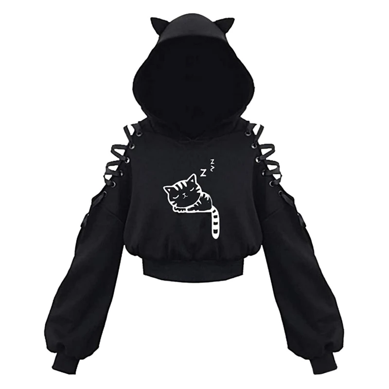 Y2k-Sudadera gótica con capucha para mujer, Top corto con orejas de. Descubre ropa de mujer seleccionada por Omeda para tu día a día.